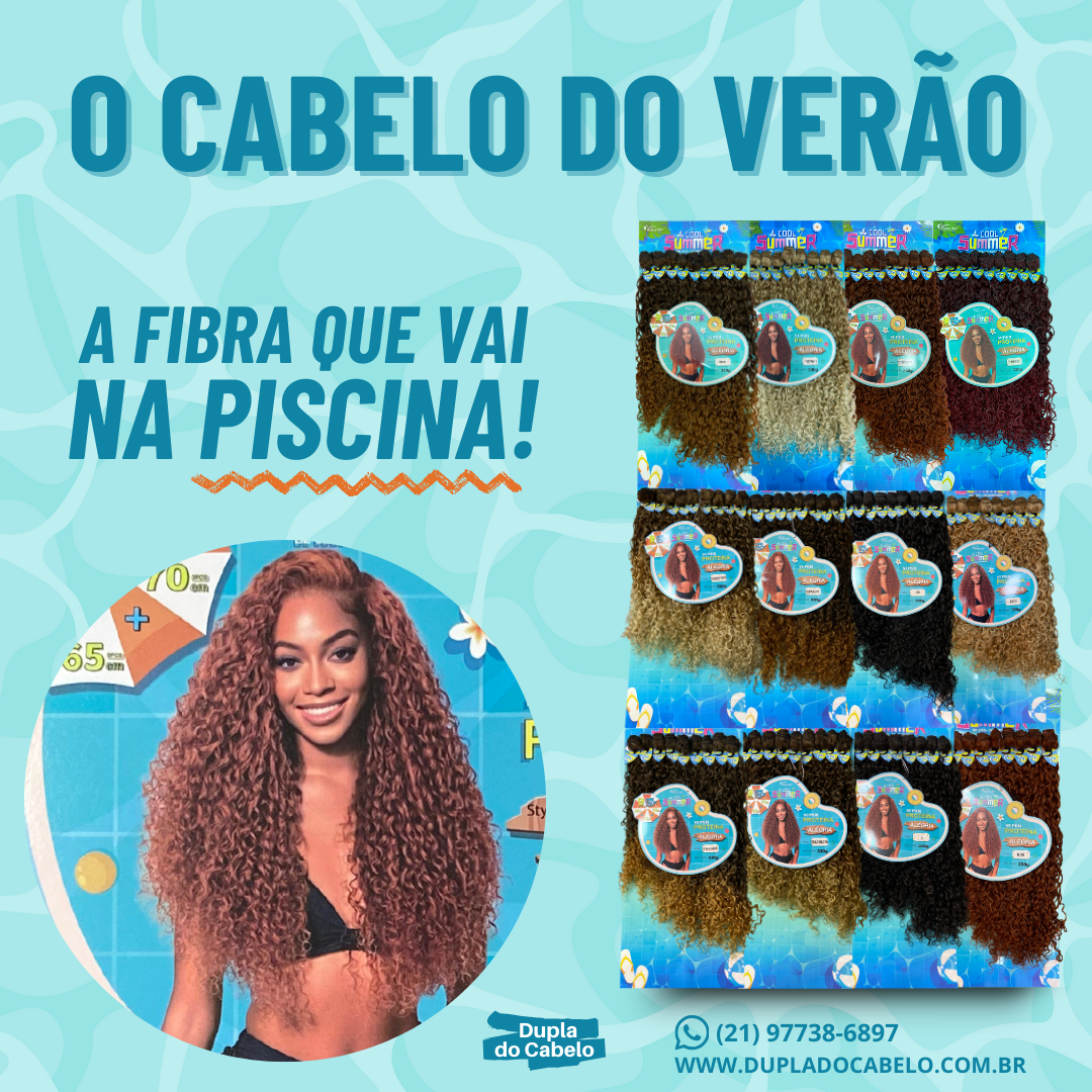 O Cabelo Alegria - Modern Girl tem cachos abertos e longo comprimento. Compõe a coleção Cool Summer, ele é de fibra de Super Proteína que adere creme, permite ser penteada e suporta calor, fibra desenvolvida para praia e piscina. Cada pacote contém 9 peças que variam entre 60cm/65cm/70cm e totalizam em 330 gramas.