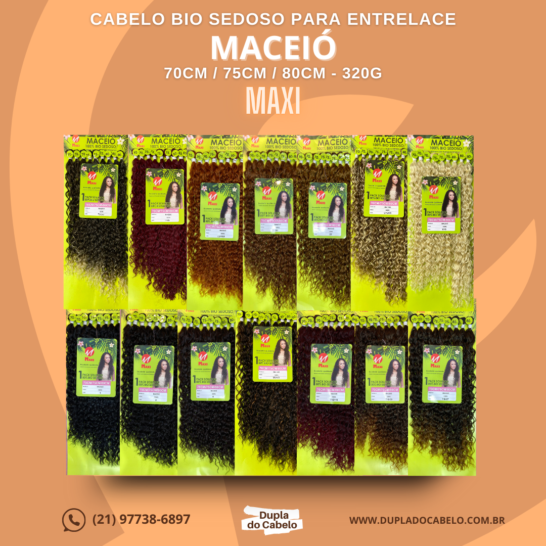 A fibra Maceió é 100% Bio Sedoso, possuindo excelente qualidade, aderindo água e creme e suporta temperatura de até 180º C para modelar. Possui cachos mais abertos e longos naturalidade e beleza.