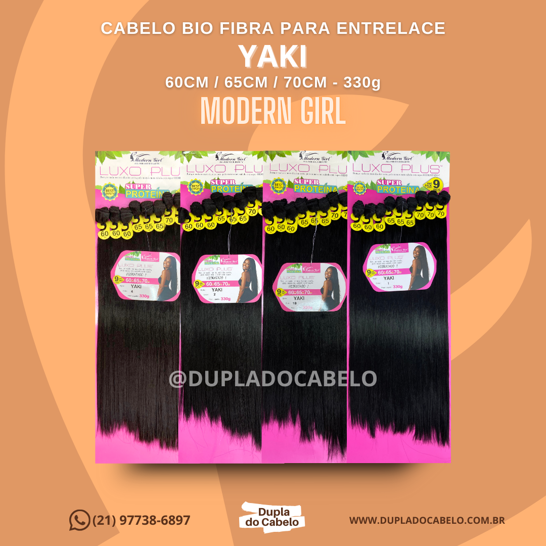 Descubra a beleza e a sofisticação do Cabelo Yaki da Modern Girl! A linha Luxo Plus foi desenvolvida bio fibra de alta qualidade, o modelo Yaki é liso, e possui caimento natural, perfeito para quem busca sofisticação, movimento e um visual elegante. Além de aderir água, creme e gel!