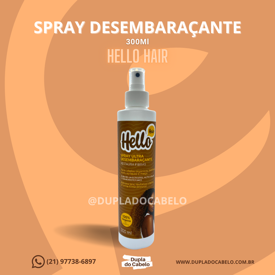 O Spray Desenbaraçante Hello Hair foi desenvolvido especialmente para o cuidado de fibras capilares, como Cabelos Orgânicos, Biofibras, Laces, Apliques e Mega Hair. Sua fórmula inovadora com agentes umectantes, filtro solar e termoprotetores ajuda a remover a teia, revitaliza o brilho e forma um filme protetor que preserva integridade das fibras. Ideal para manter seus fios sempre soltos, protegidos e com aparência natural e bem cuidada.